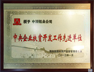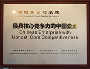 中国投资协会会员单位注册证牌中国投资协会 中国红十字勋章中国红十字会会长华建敏 中国铝业公司获得金交易奖说明财务部 中国再生资源产业技术创新战略联盟理事长单位中国再生资源产业技术创新战略联盟 科技创新特别奖国资委 节能减排特别奖国资委 全国职业安全健康知识竞赛优秀奖国家安全生产监督管理总局 信息化与工业化融合促进节能减排试点示范企业工业和信息化部信息化推进司 中国有色金属加工工业协会第六届理事会副理事长单位中国铝业公司中国有色金属加工工业公司 关于表彰中央企业2007-2009年任期业绩考核业绩优秀企业和特别奖获奖企业的决定国务院国资委 荣誉证书[中国铝业公司被评为2010年度有色金属行业统计工作先进单位中国有色金属工业协会 荣誉证书[中国铝业股份有限公司被评为2010年度有色金属行业统计工作先进单位中国有色金属工业协会 |