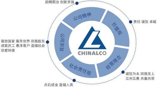 矿产资源是人类社会生存和发展的重要物质基础,是支持经济社会又好又快发展的重要保障。中铝公司以全球化视野,通过透明、负责任的决策,高效利用公司的人、财、物等资源,可持续地开发国内外矿产资源,并以经济、绿色、和谐的方式,炼矿成金,变石为宝,为利益相关方创造更优的综合价值,实现经济、环境、社会和谐发展,进而造福全人类。